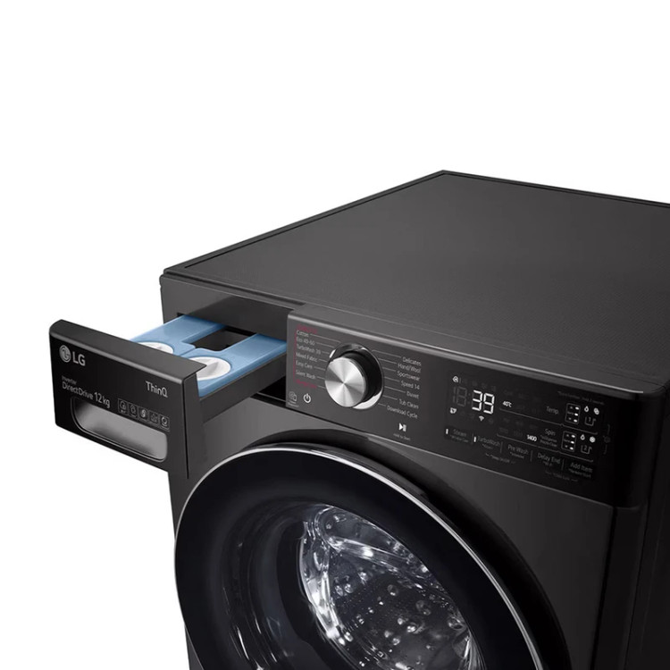 **نتیجه تحلیل:** این دستگاه یک **ماشین لباسشویی ۱۲ کیلوگرمی الجی با رنگ دوگانه مشکی-سفید، پنل کنترل پیشرفته، رده انرژی عالی و طراحی اروپایی** است. یک مدل **رده بالا** برای خانوادههای بزرگ یا کسانی که حجم زیادی لباس میشویند.