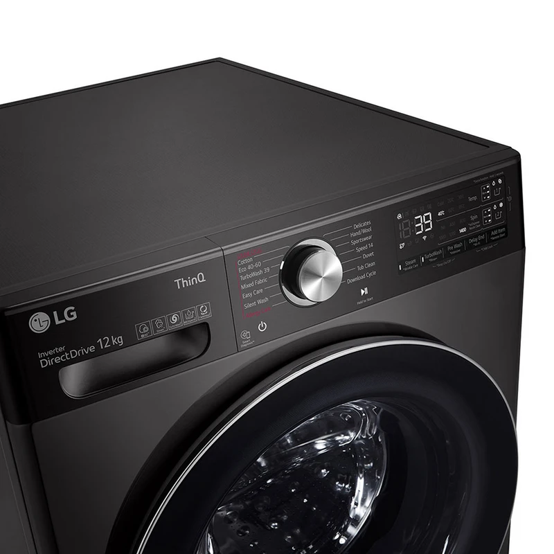 **نتیجه تحلیل:** این دستگاه یک **ماشین لباسشویی ۱۲ کیلوگرمی الجی با رنگ دوگانه مشکی-سفید، پنل کنترل پیشرفته، رده انرژی عالی و طراحی اروپایی** است. یک مدل **رده بالا** برای خانوادههای بزرگ یا کسانی که حجم زیادی لباس میشویند.